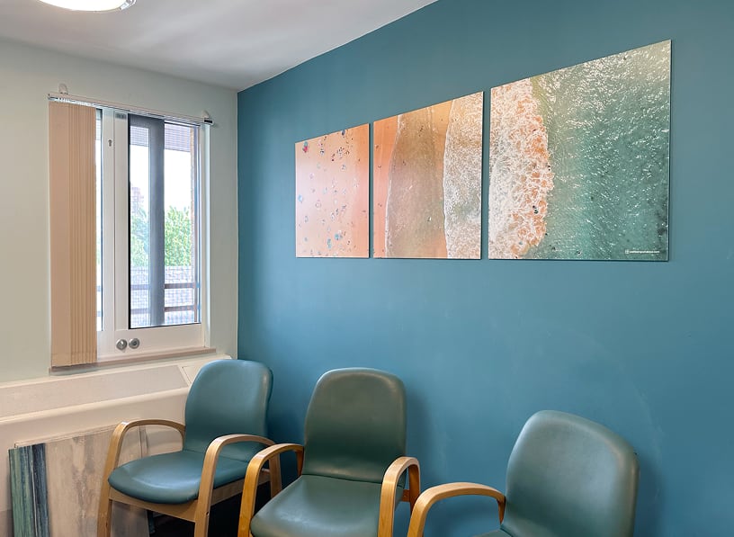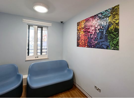 The Lavender Walk centre is a secure residential unit which has few windows, lots of blank walls and is mainly lit by skylights. We were asked to provide artworks for consultation rooms, corridors, dining rooms and communal areas.